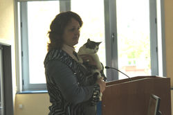 ![]() Встреча проходила в лицее Пол есского государственного университета. Тема: "Бездомные домашние животные" | ![]() 10 "Б" класс. Ребята встретили нас тепло. | ![]() Особенно когда увидели, что в гости к ним пришёл кот Тайгер, бывший дикий и бездомный, а ныне самый домашний и ручной. Да и мы почувствовали себя как дома. И вот почему. |